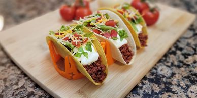 The compact, customizable taco holder for simplified, creative prep & serving.