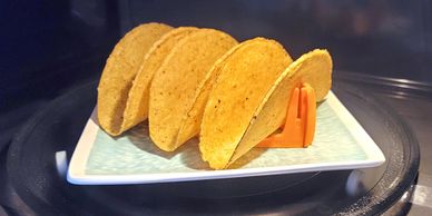 Easy Prep & Serve: Twangler holds various sizes and types of hard and soft taco shells upright, together, and in place. It's microwaveable for convenient hard shell crisping. Plus, it's support arms help to prevent hard shells from cracking when filling with ingredients.